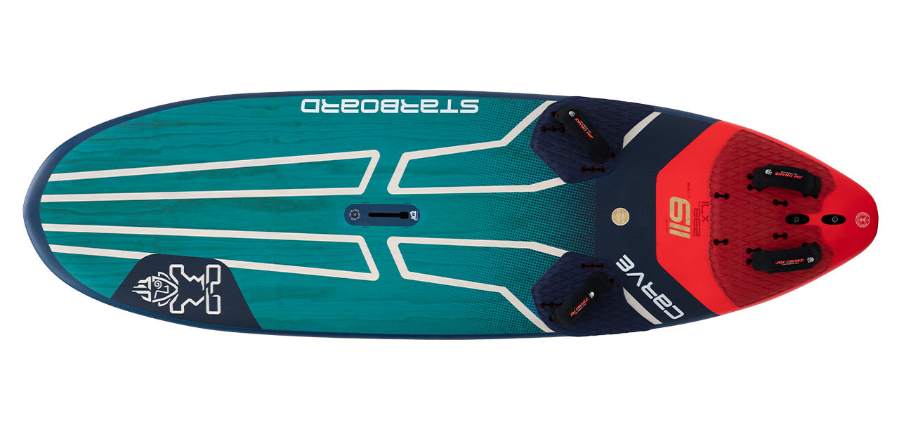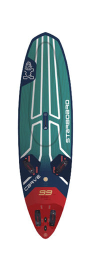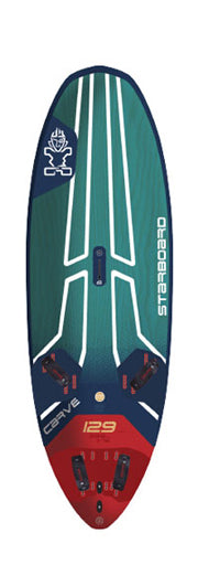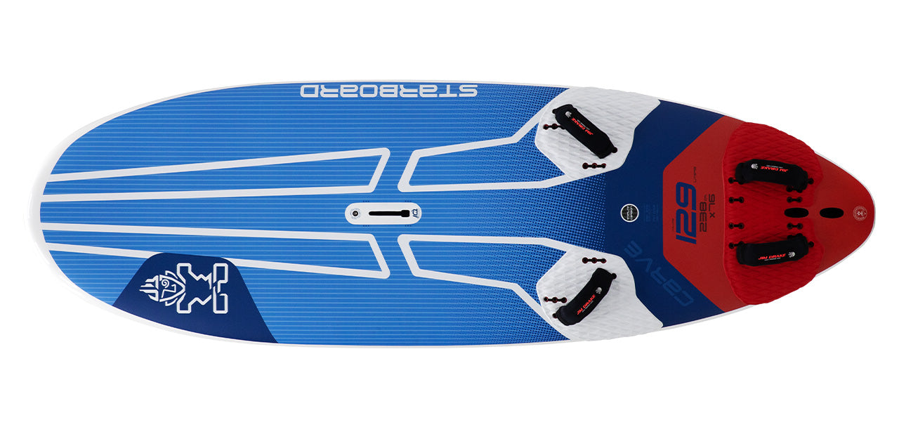 2025 Carve Windsurf Board: Starboard 129.9 carbon surfboard in blue, red, white