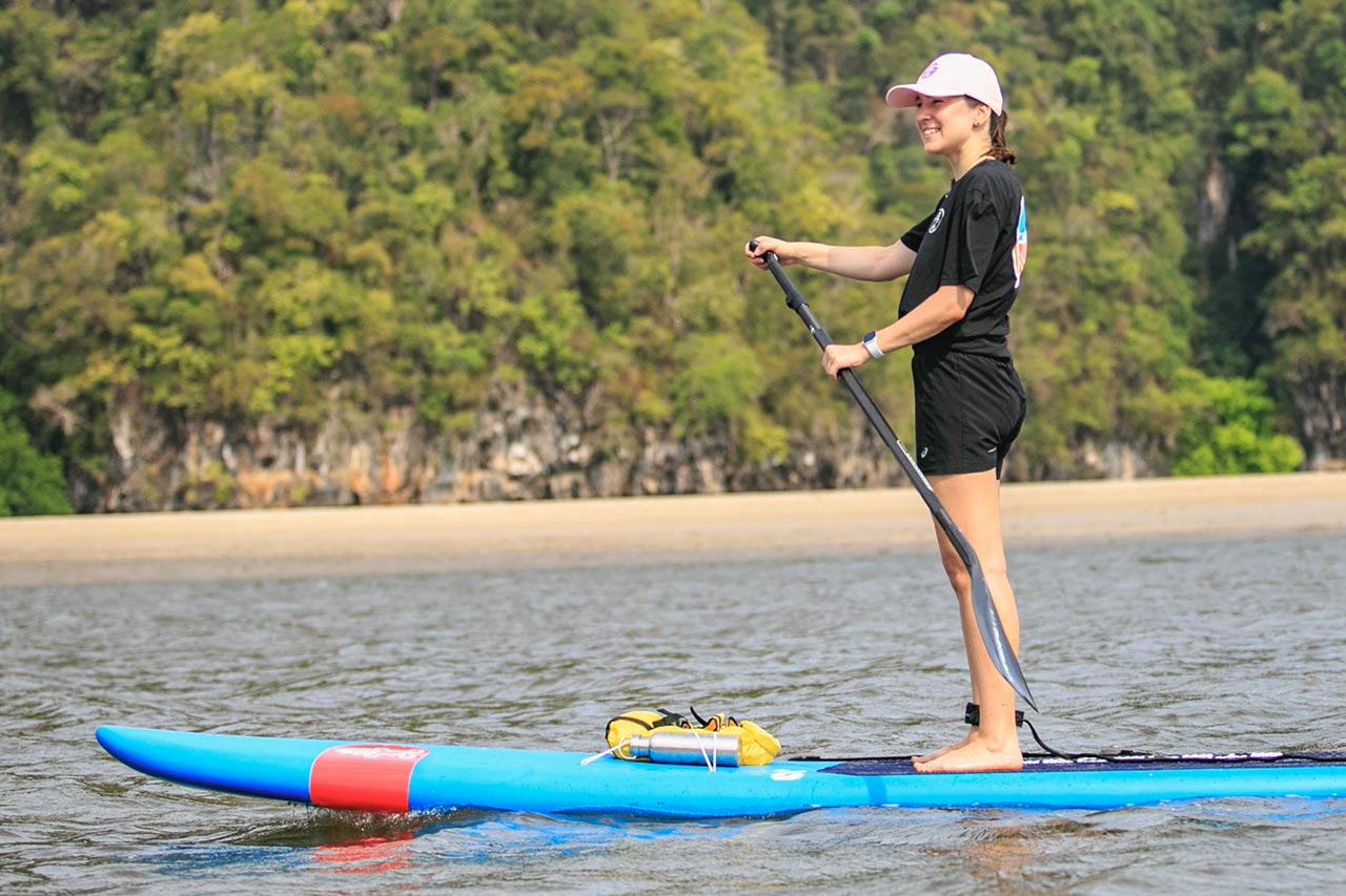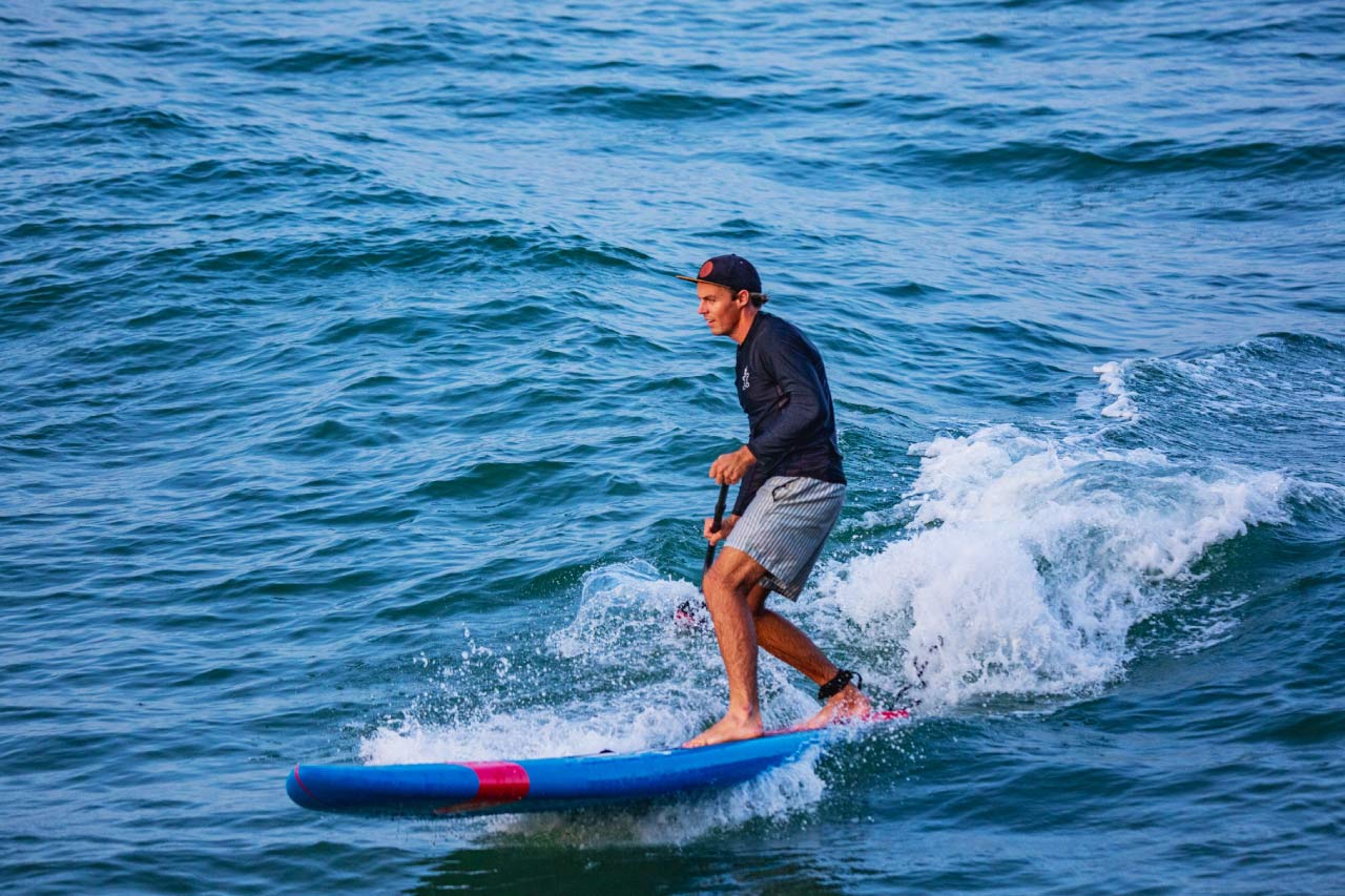 Generation Paddleboard: Blue and red SUP with white accents for water sports