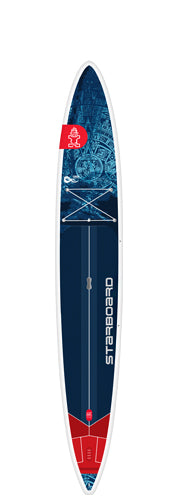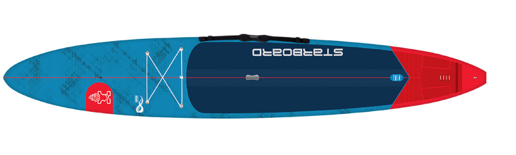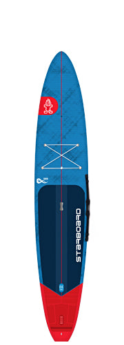 2019 Ocean Rodeo 13.6ft Generation SUP with blue red graphics white deck