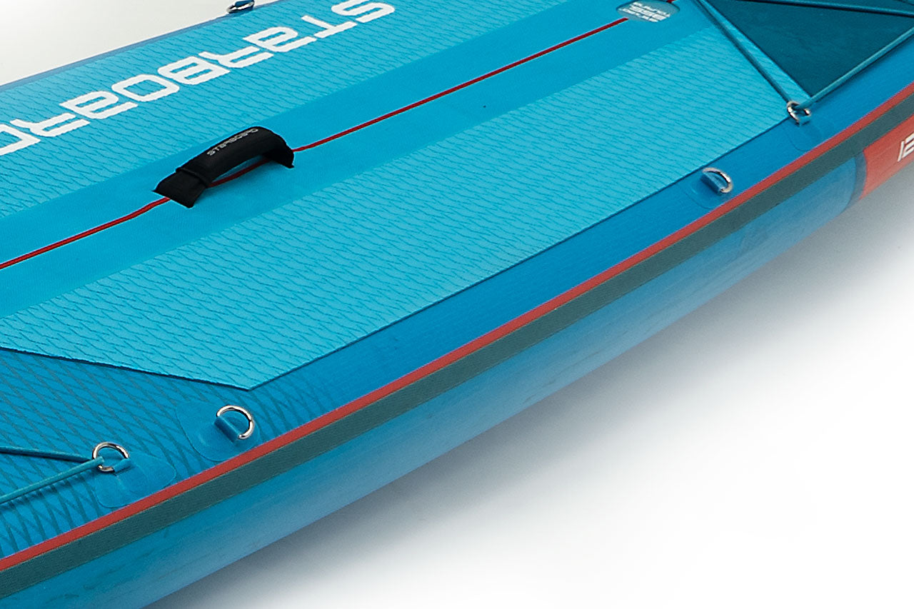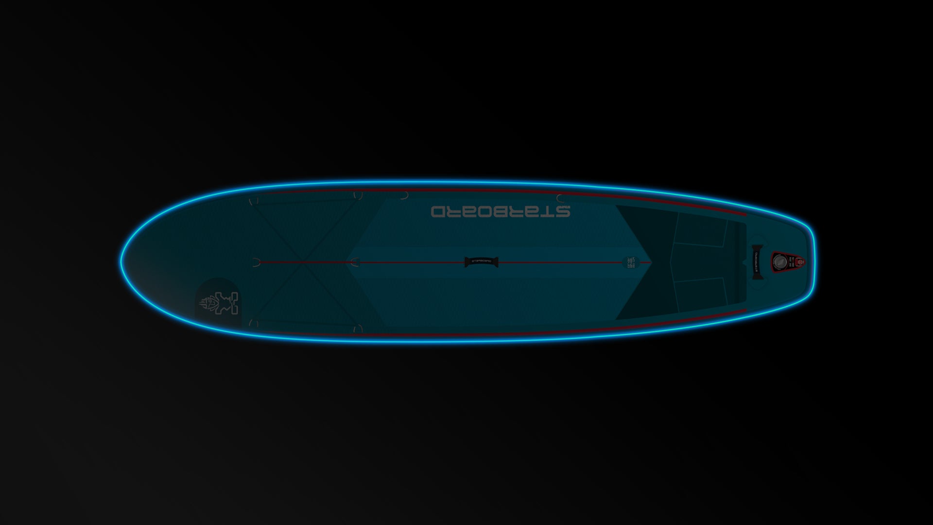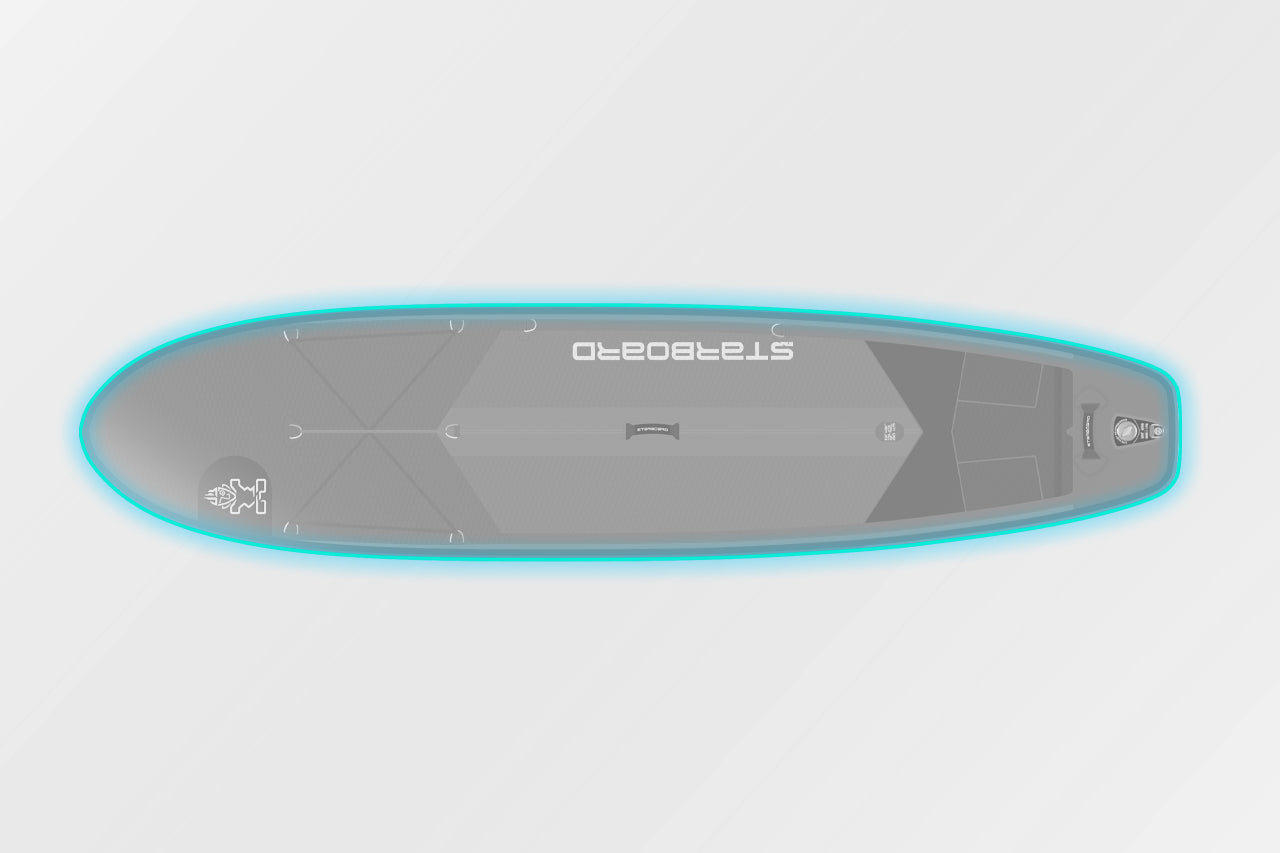 The lightest inflatable construction from Starboard – up to 2 kg lighter than regular inflatable board construction. Build with Woven Dropstitch to make the board lighter and stiffer.