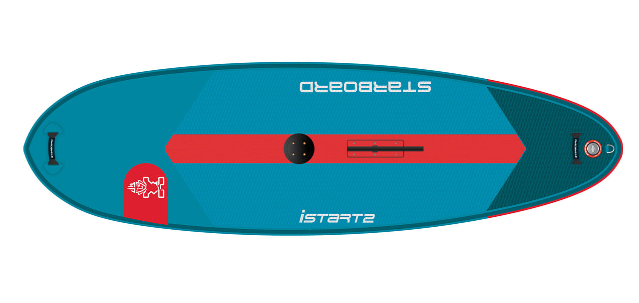 The iSTART2 is the lightest learner board we have ever offered. You will feel how the light weight, long flat bottom surface, rounded tail and edge release creates immediate glide sensation and helps you get up into semi planing with minimal effort. The board tacks with ease. Side fins not to be used for windsurfing.