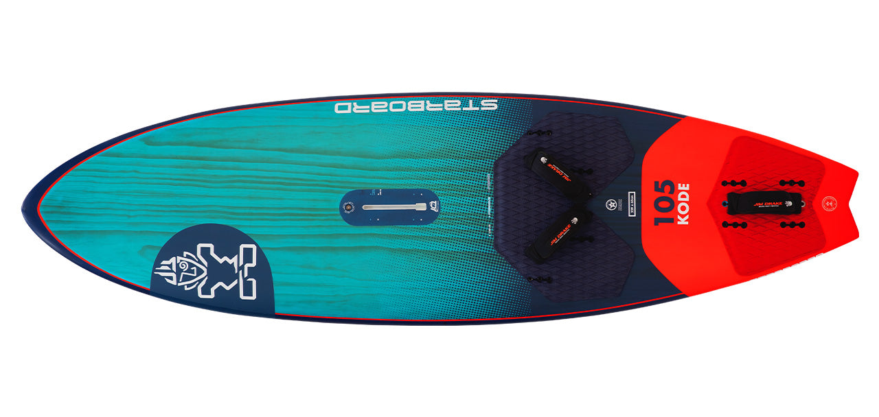 Efficient flat mid-rocker into a very smooth curve under the standing area acts like an accelerator pedal and lets you ride into cruise control. Thin rails provide bite. Without grab. Double concave under the nose area boosts planing, smoothing your ride in aggressive conditions. Vee concave mid section feeds a pronounced tail vee, empowering the Kode with more wave board turning ability than a crossover board. The Kode sensation. Different from any other Kode range ever developed.