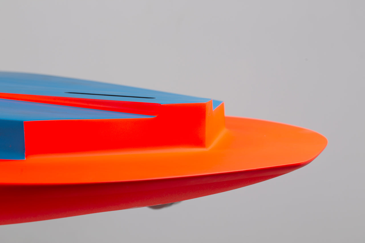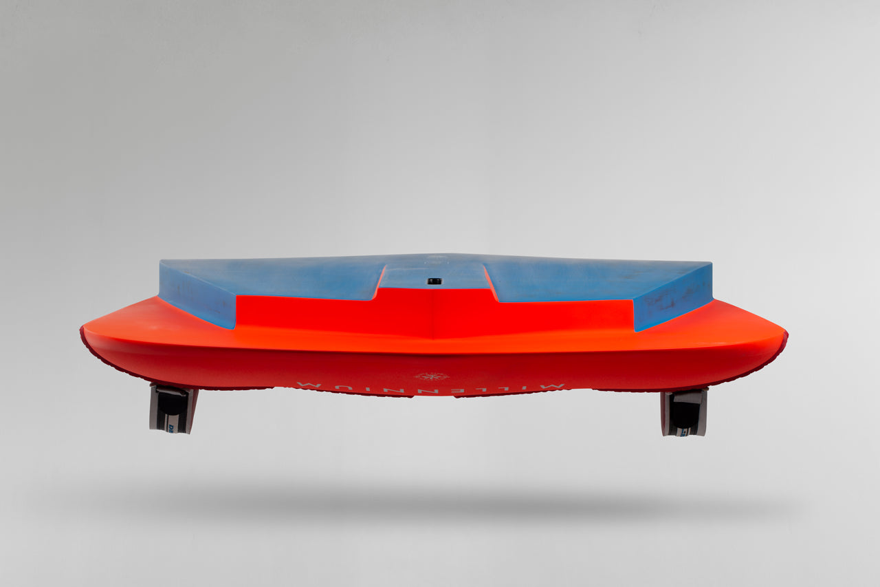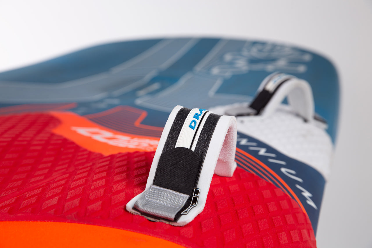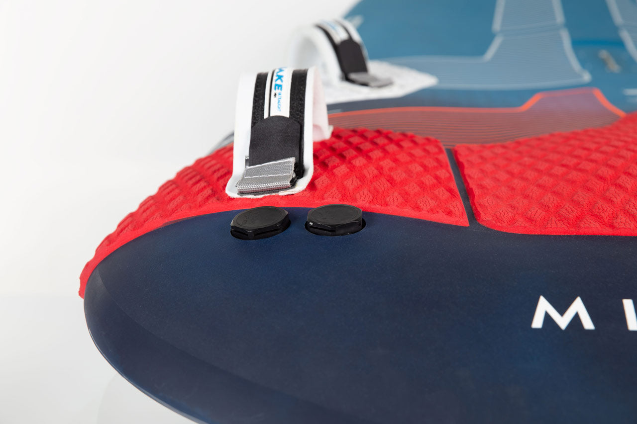 Blue and red Strataboard Millennium wakeboard with orange tip on Millennium Windfoil Board