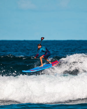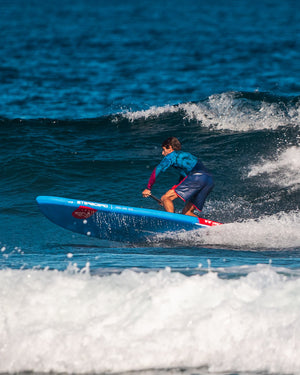 This board is perfect if you want to go surfing without dealing with airline baggage policies. Based on the composite outline, the narrow nose does not get caught through your turns. The wide standing area offers stability, while the pulled-in tail ensures responsive turning. The extra length over the shorter 8'7" gives better glide and stability.