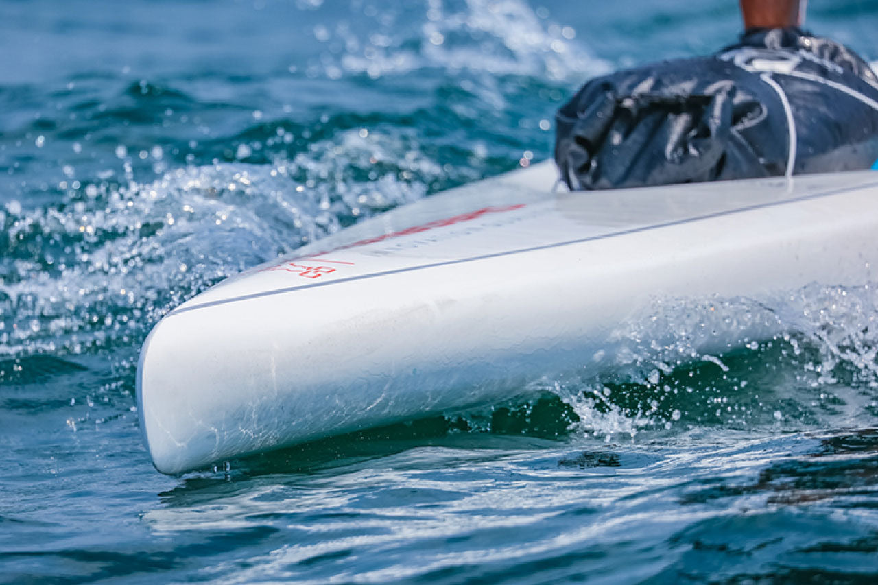 The Touring range draws inspiration from our winning race designs to offer optimal glide, while the lowered centre gravity makes for stable paddling over longer distances, with the added benefit of gear-carrying capability. Its flat side planes mimic a catamaran’s stability while the straight middle rocker ensures optimal glide.