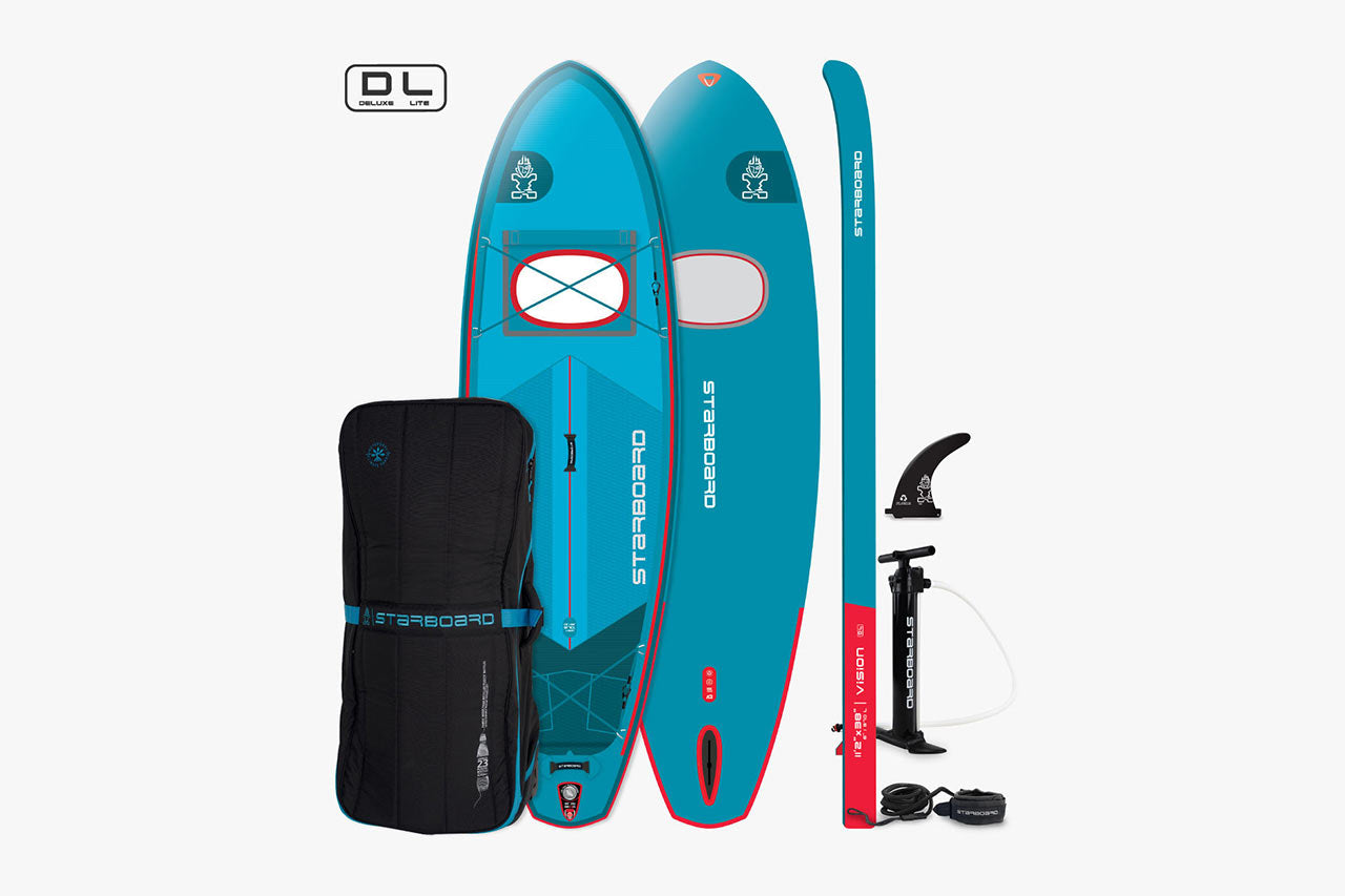The Vision Inflatable Paddle Board opens a whole new world. Look beneath the choppy surface of the sea to see fish, coral reefs and more. At 38” wide, it is extra stable with plenty of volume for a parent to paddle and kids to watch what’s happening down below.