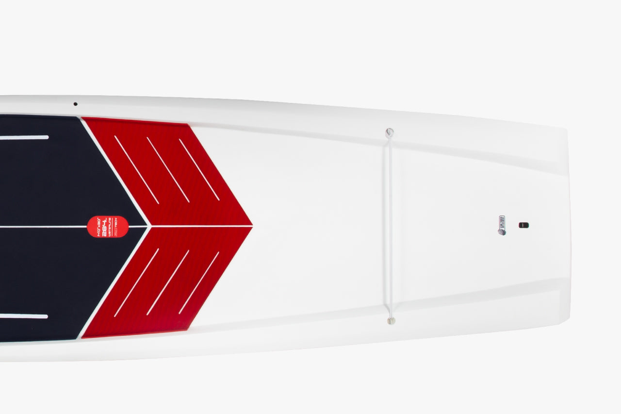 Inspired by years of success in Windsurfing, the cutaways at the tail increase the speed by reducing drag from the narrow wetted surface area. The cutaway allows you to increase speed as the water feels a narrower planning surface yet maintains stability from the full tail outline. The Cutaway acts like a stabiliser, when conditions get choppy, the deck outline catches and stops the board from rolling.