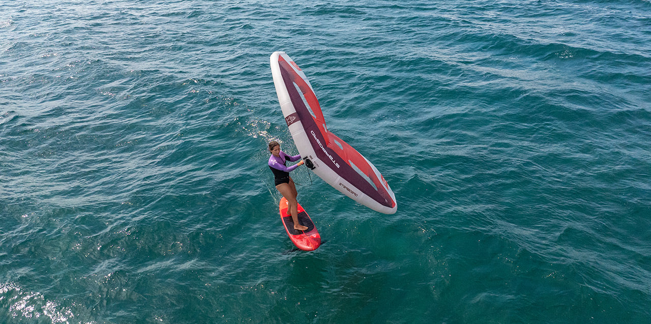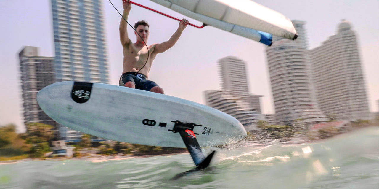 Additional volume in the nose and tail creates a balanced stance over the foil, generating early lift-off and rapid recovery on touchdown.