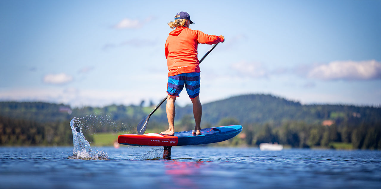 In addition to being our fastest SUP downwinding board, the Ace Foil Lightning is a fantastic crossover range, excelling in light wind wingfoiling conditions, as well flat water foiling.