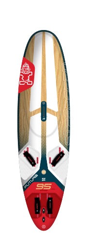 FUTURA 95 is built for gusty winds with a 90 cm flat and extra Vee, delivering effortless control and stability.