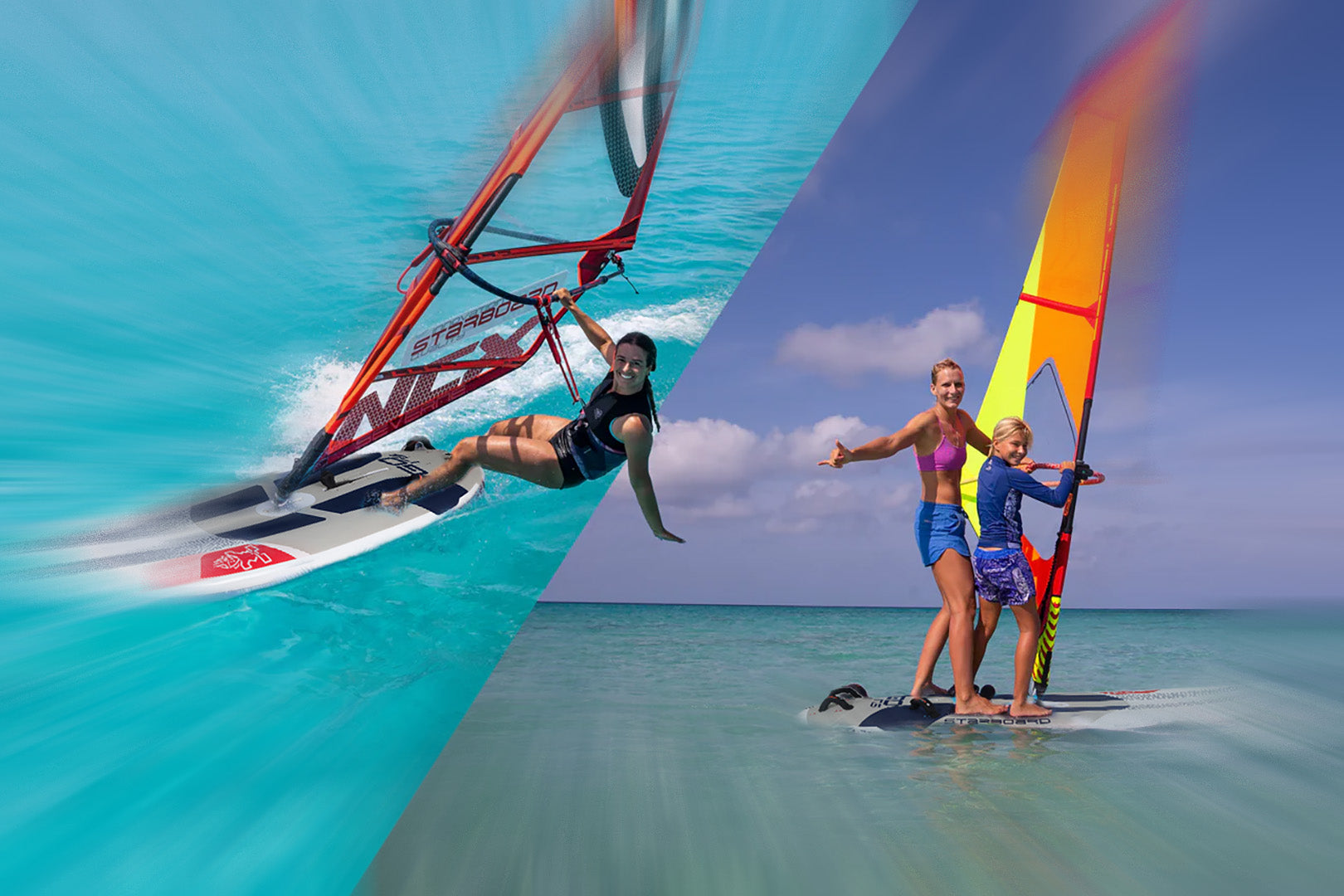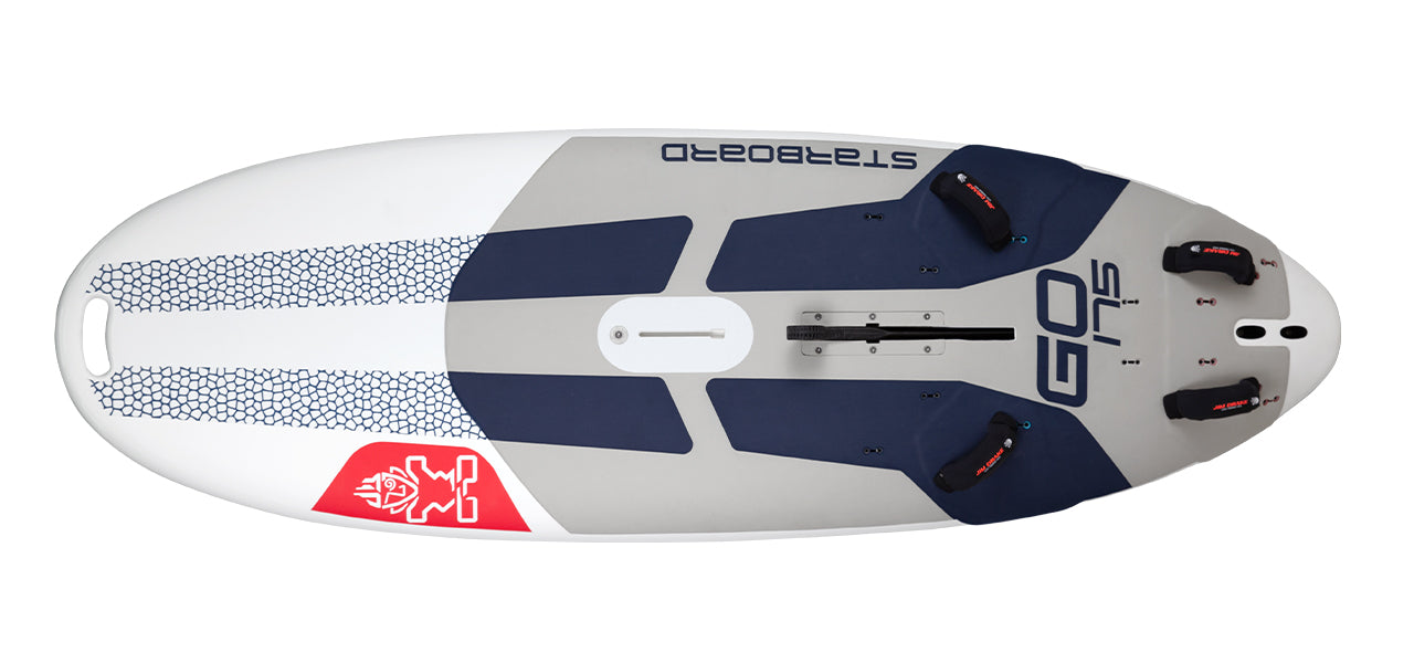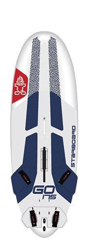 Superb versatility with ultra modern handling define the all GO Windsurfer range. Evolved directly from the hugely successful Carve family, GO Windsurfers feature an integrated full daggerboard and longer mast tracks, enhancing confident performance over a wide range of sub-planing and planing conditions.