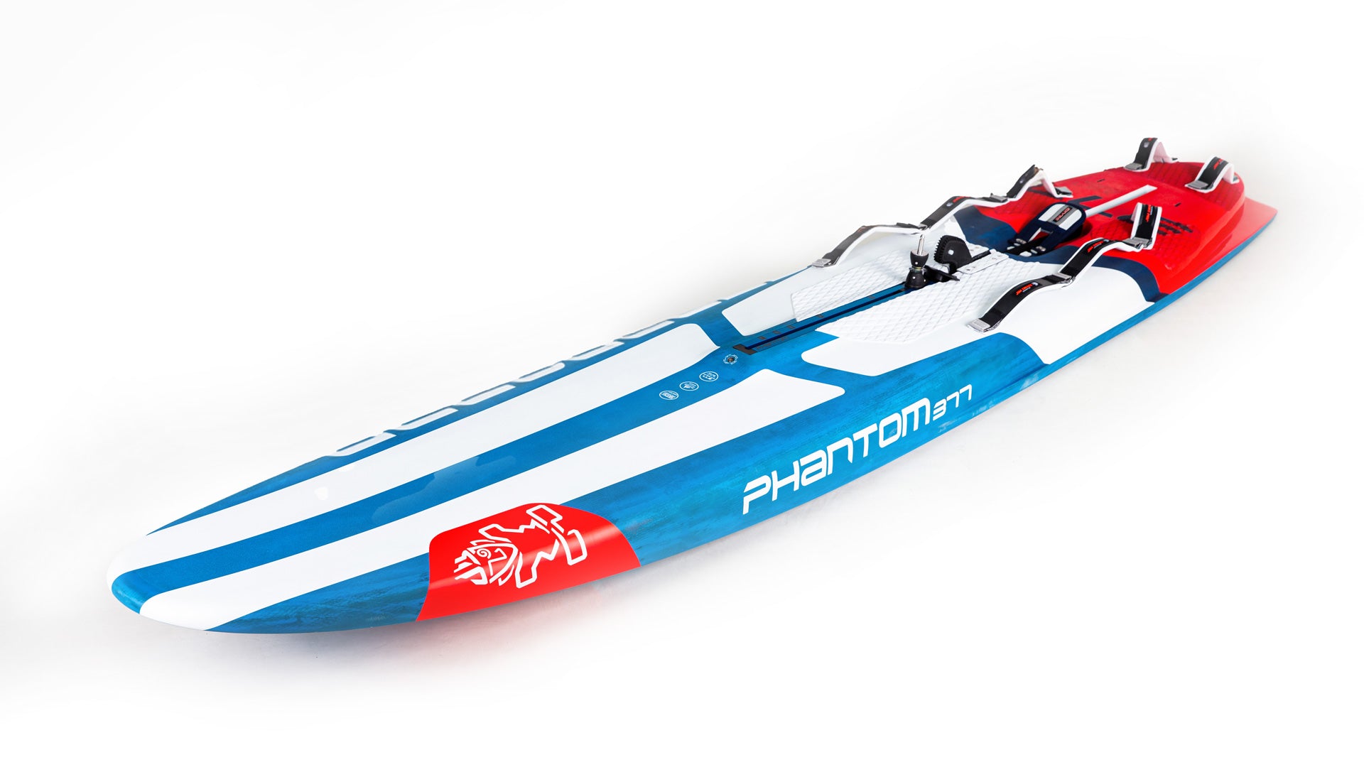 The most successful, most popular and most advanced windsurf race boards. The Phantom race windsurf board series dominate through sheer technological advantage, with their bat wings, slanted mast track concept and raised sidewalls.