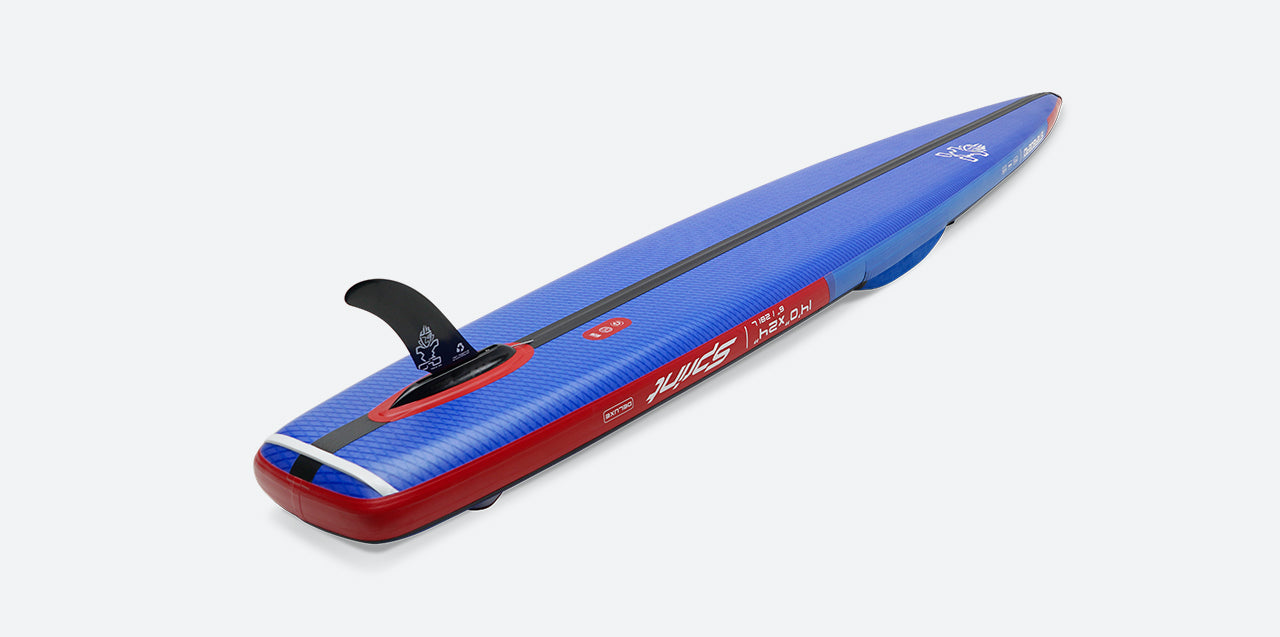 The lightweight of this race board has been achieved with the woven dropstitch combined with the fusion lamination.