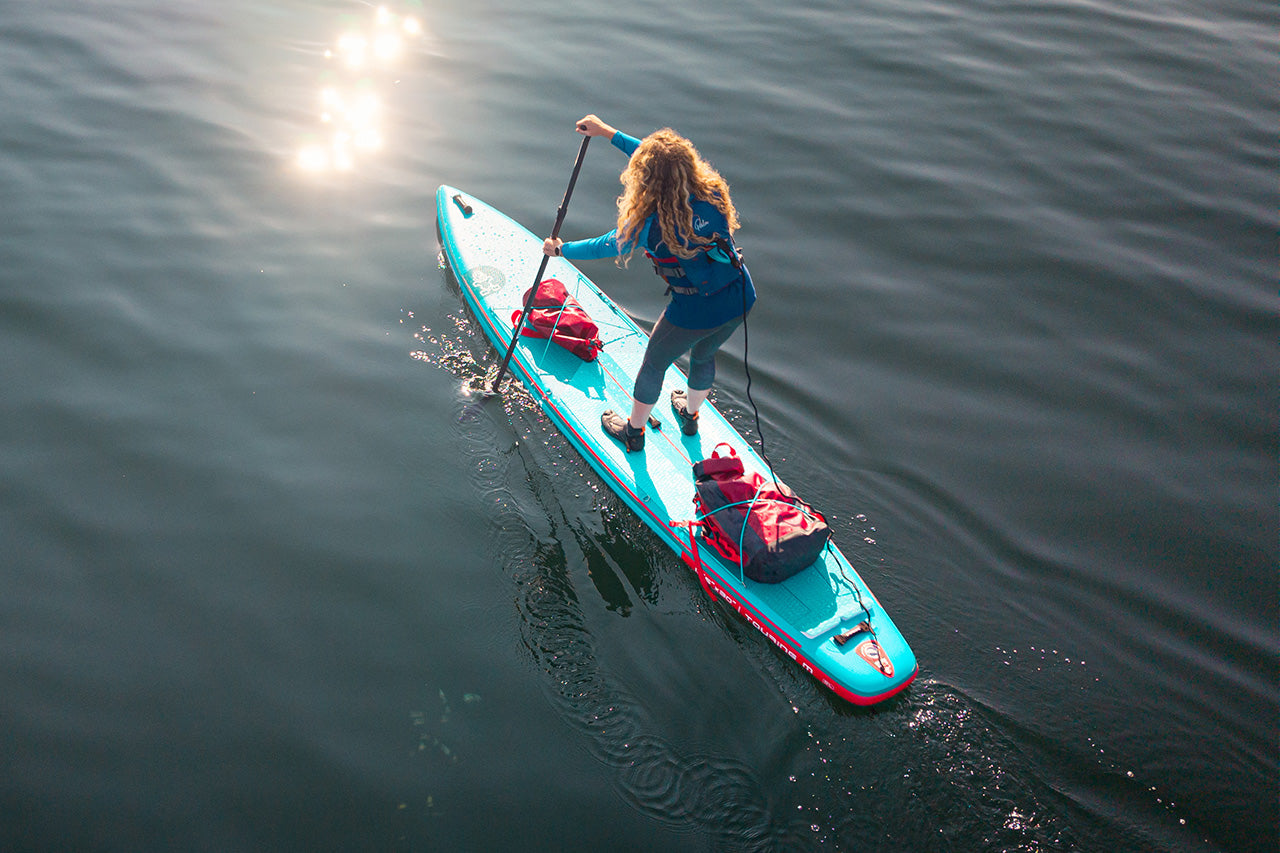Our Touring paddle boards offer a balanced glide and premium features, making them the highest-rated by magazines and a customer favorite. The wider nose and squarer tail increase stability in harsh conditions. Rail Edge Technology reduces drag, while Welded Rail Technology strengthens the board for longer-lasting performance.
