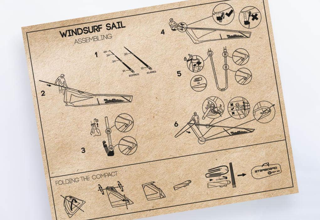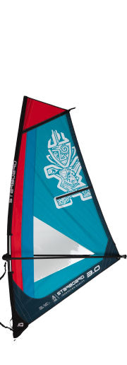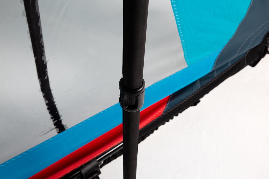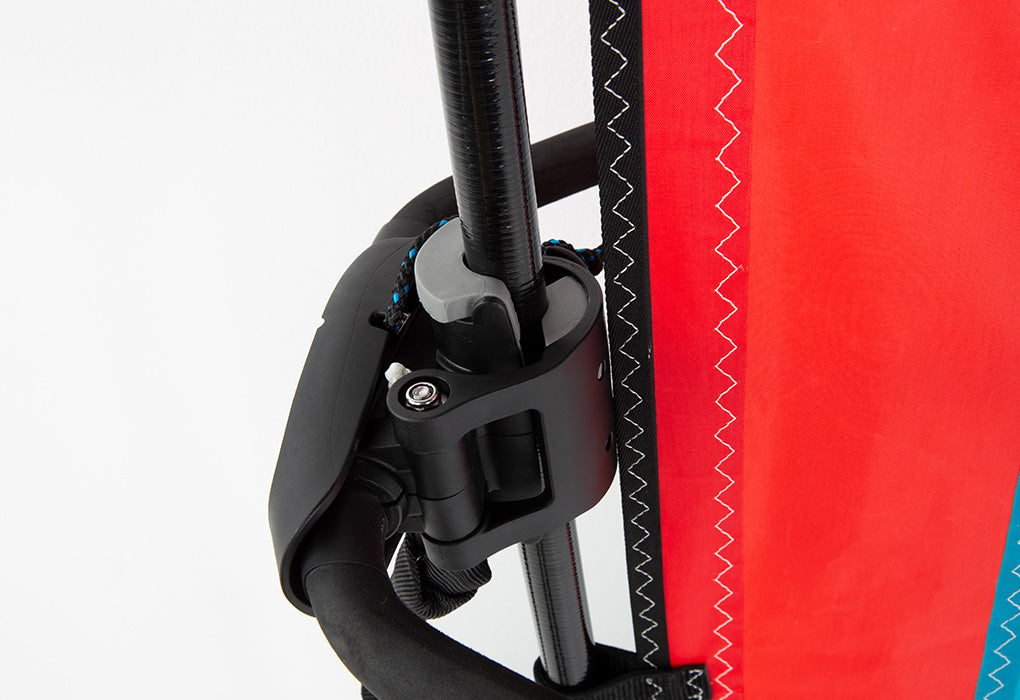 The Starboard Compact Sail Rig was fun to develop! We do much of the development sailing on our knees to truly sense what a kid does in terms of size and leverage. We worked with a fishing rod specialist to come up with a super light, strong and skinny mast for the smaller sizes. The mast sleeve was minimized to avoid any water caught there during uphauling. The bottom area of the sails are extra reinforced as this is where your knee might end up and where the tension is at the highest. The release clip at the mast base has the amazing cap power system, so anyone can attach and release the rig from the mast base.